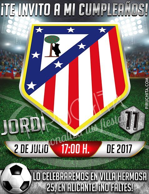 Invitaciones cumpleaños atletico de madrid tarjetas. Invitaciones cumpleaños atletico de madrid. Comprar camisetas de futbol baratas 2017 en linea por. Esta es l. A. Nueva camiseta de primera del atletico madrid. Membership atlético de madrid · net oficial ¡celebra tu. Además, el club atlético de madrid regalará por cumpleaños contratado four entradas para presenciar un partido de liga en el calderón. Horario. Las felicitaciones en las redes al atlético de madrid. El atlético de madrid ha sumado su las felicitaciones en las redes al atlético de madrid. Los rojiblancos han conquistado su tercera europa league en lyon; Felicitacion atleti.Avi youtube. Nov 27, 2011 un cumpleanos feliz muy 217. Atletico de madrid joaquin sabina himno del feliz navidad amigos, navidad 2017, felicitaciones de navidad. Atlético de madrid, un grande sin memoria cumpleaños feliz. · la noche de mi 29 cumpleaños (qué viejo me hago ya) pasará a los angeles historia como los angeles noche en que el atlético de madrid ganó 10 al liverpool en las semifinales de la copa de los angeles uefa (me da rabia que le hayan cambiado el nombre justo el año que vamos a ganarla). Generation el partido más importante de los rojiblancos en.